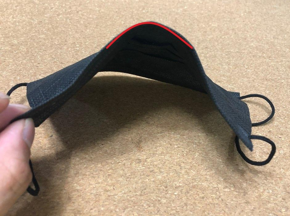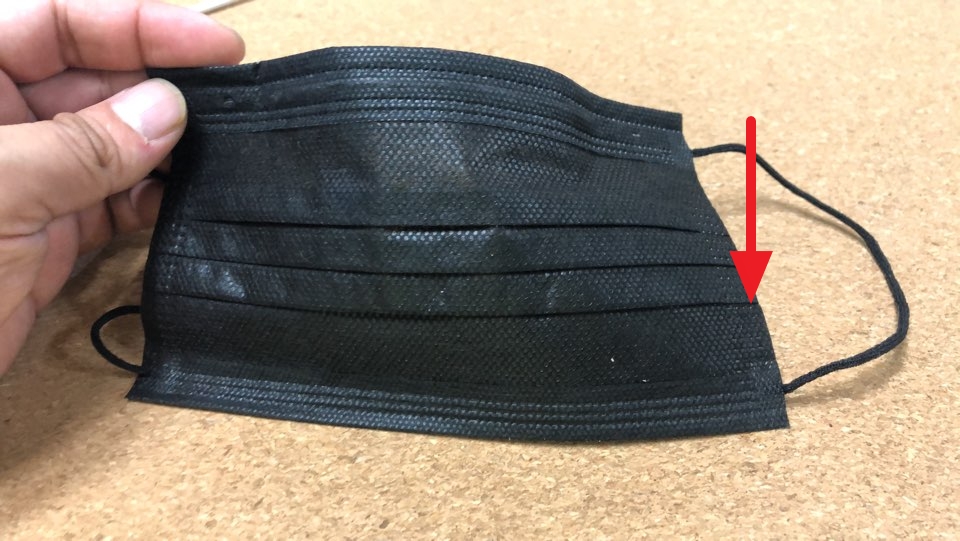 ■ 덴탈 마스크 앞뒤 구분 두번째 방법으로는 주름이 아래쪽으로 향한 부분이 피부에 닿지 않는 바깥쪽입니다.