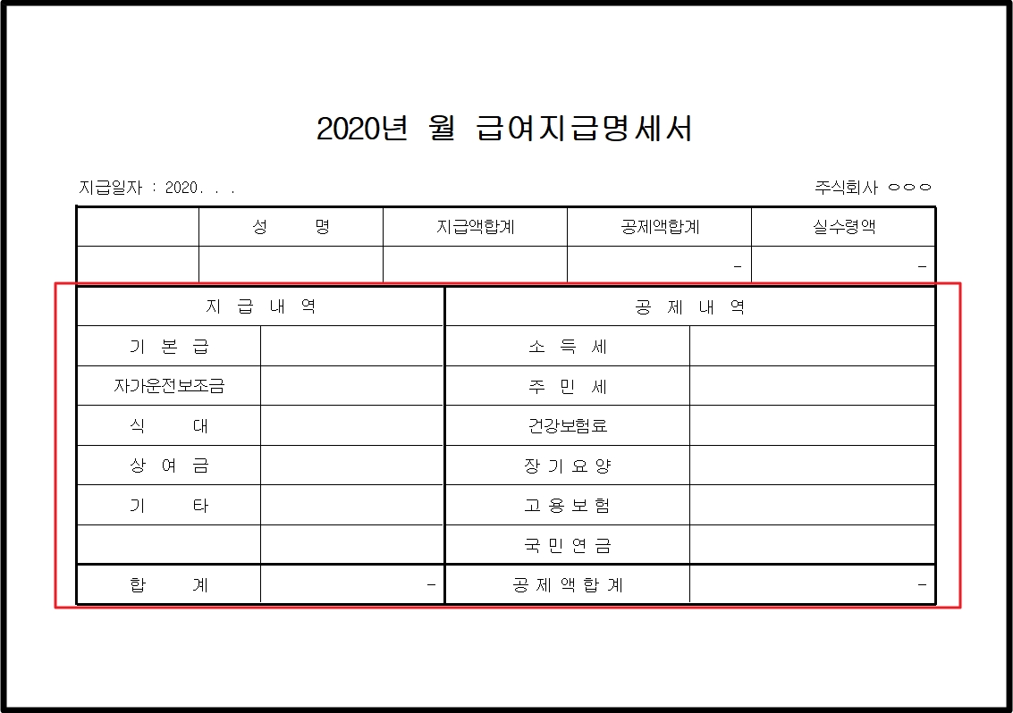 급여명세서 양식