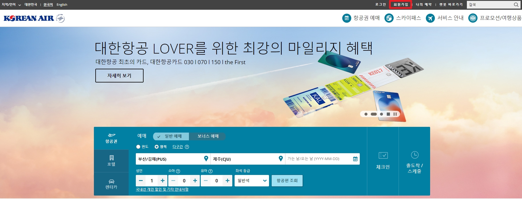 대한항공 마일리지 사용 법 (제주도 왕복 항공권 예약하기)