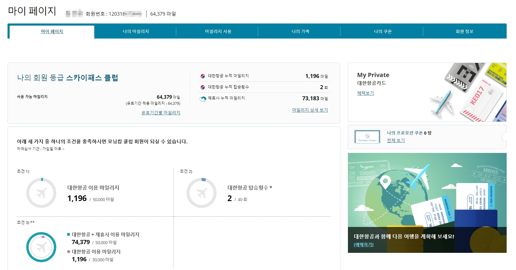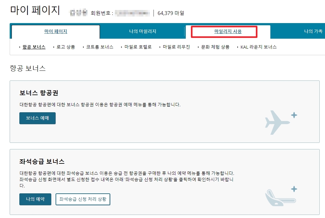 대한항공 마일리지 사용 법