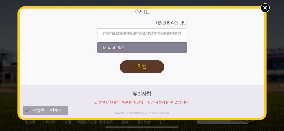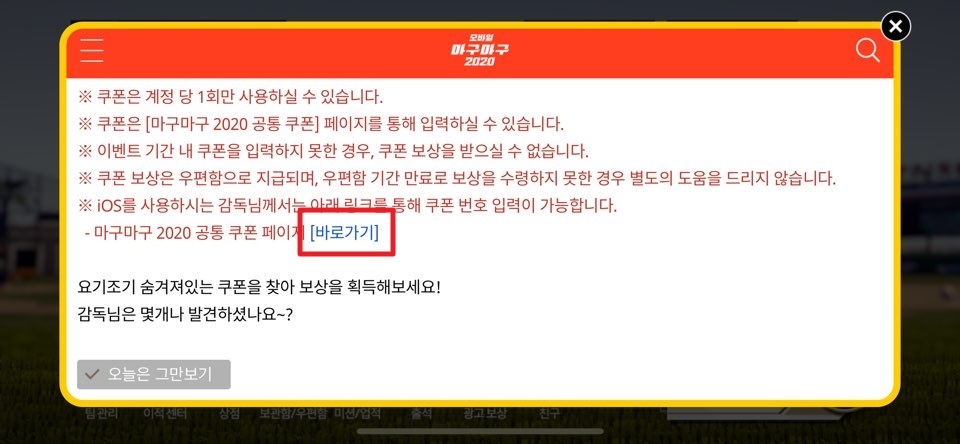 마구마구 2020 아이폰 9월 쿠폰 입력 방법