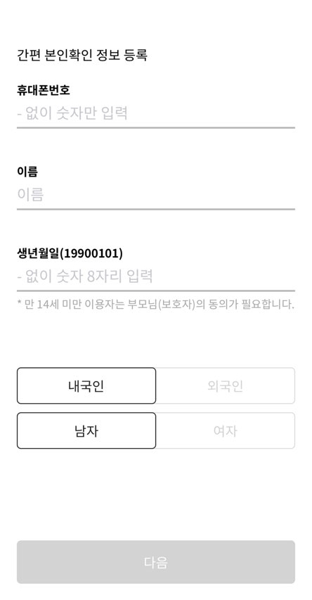 ■ 앱을 실행하시면 간단하게 회원가입을 하시고 휴대폰번호로 전송된 인증번호를 입력하시면 회원가입이 완료됩니다. 앱에서 사용할 비밀번호까지 설정해주시면 회원가입 절차는 끝이납니다.