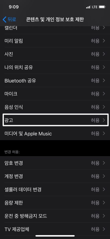 아래쪽으로 계속 내리시면 광고가 보이시는데, 허용을 허용 안 함으로 체크해주세요.