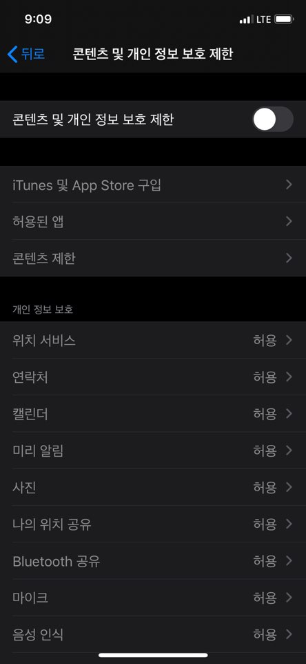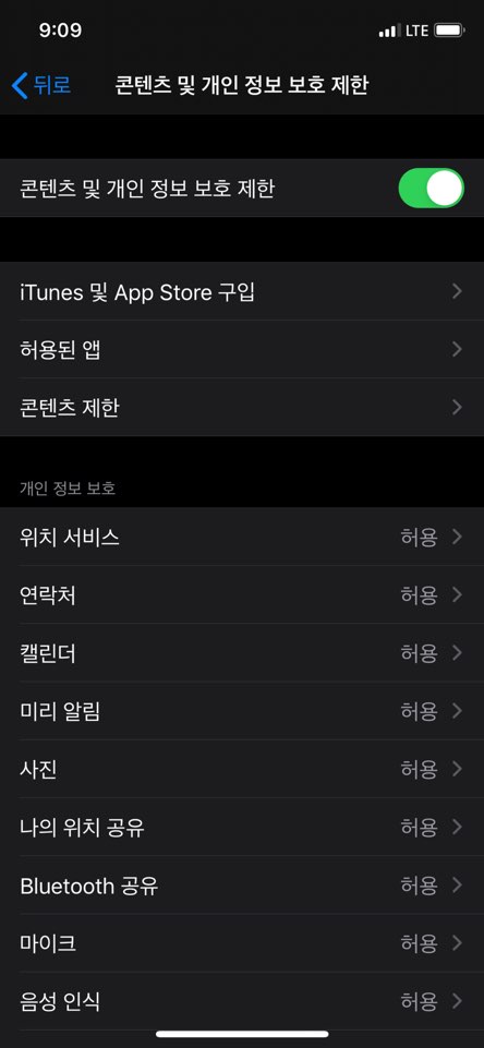 ■ 콘텐츠 및 개인 정보 보호 제한을 활성화 해주세요.