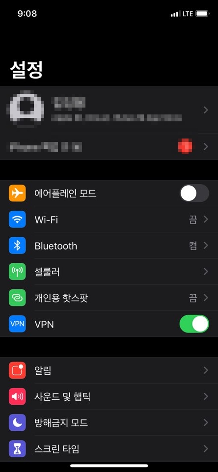설정에 들어가시면 아이폰사용자 정보와 와이파이, 블루투스 설정 등이 보이네요.