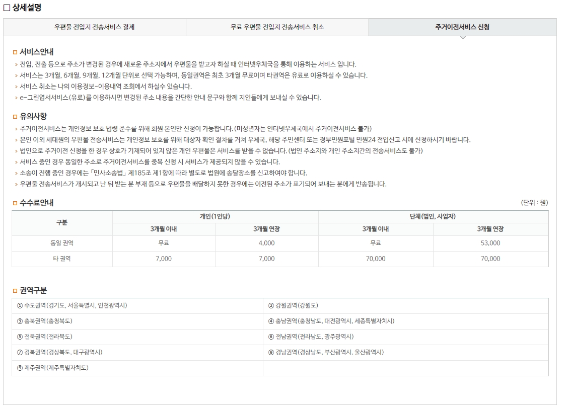 우체국 주소이전서비스
