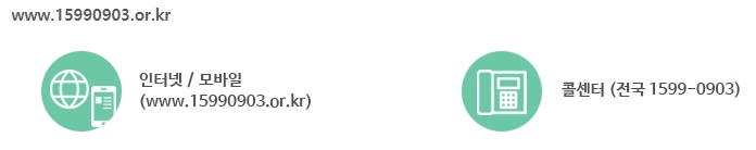 인터넷, 모바일 홈페이지 https://www.15990903.or.kr 나 콜센터 1599-0903 으로 간단하게 신청하실 수 있습니다.