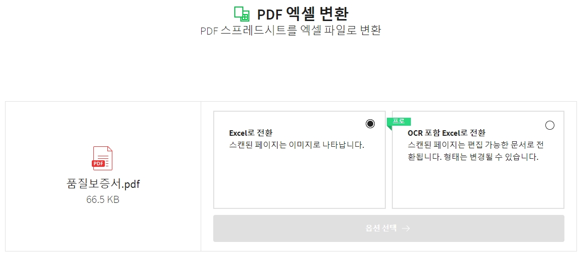 PDF를 엑셀로 변환