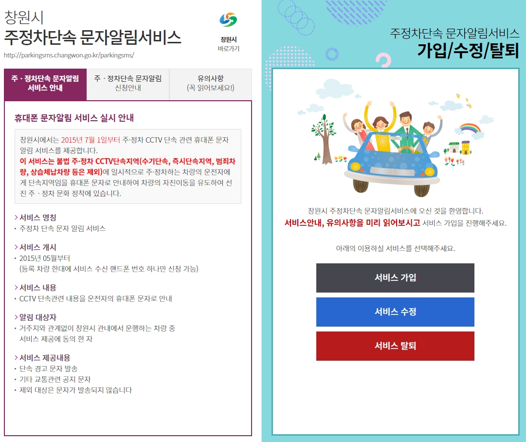 배너를 클릭하시게 되면 해당 지자체의 주정차 단속 문자 알림 서비스 웹페이지가 나옵니다.