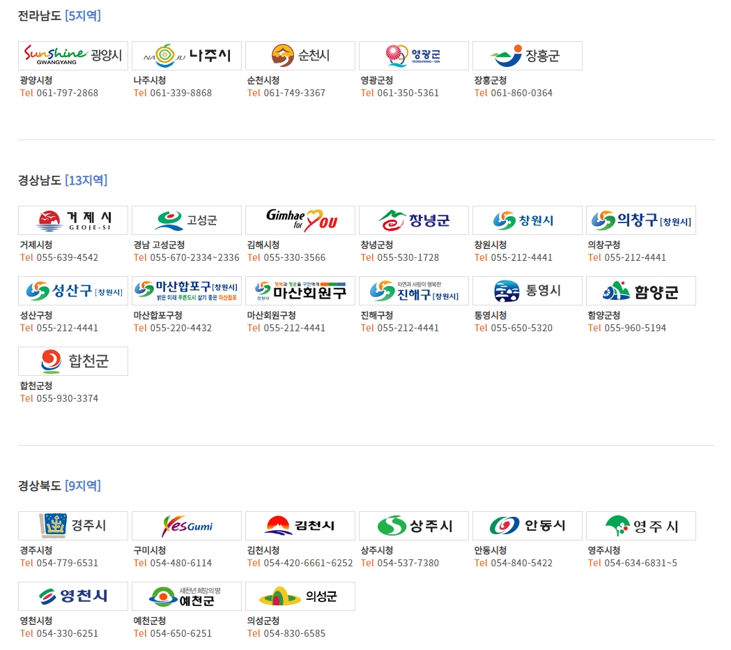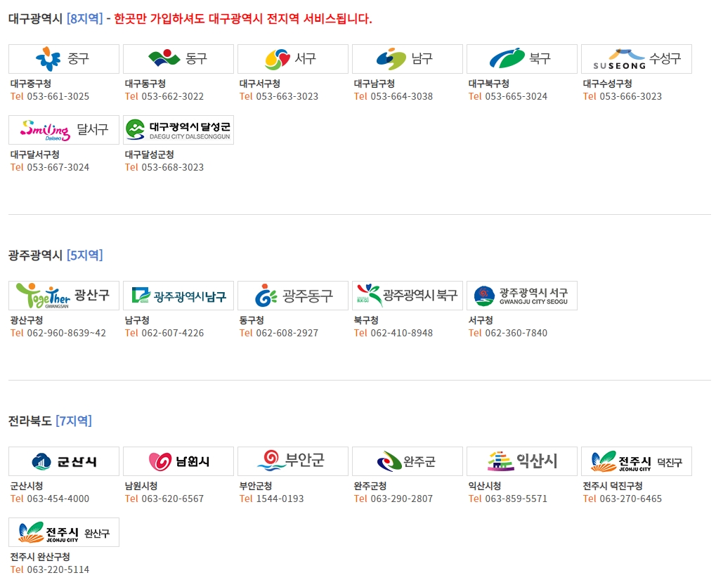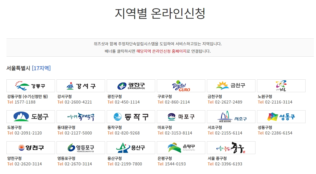 아래 지역별 온라인 신청에서 해당되는 지역의 배너를 클릭하시면 됩니다.