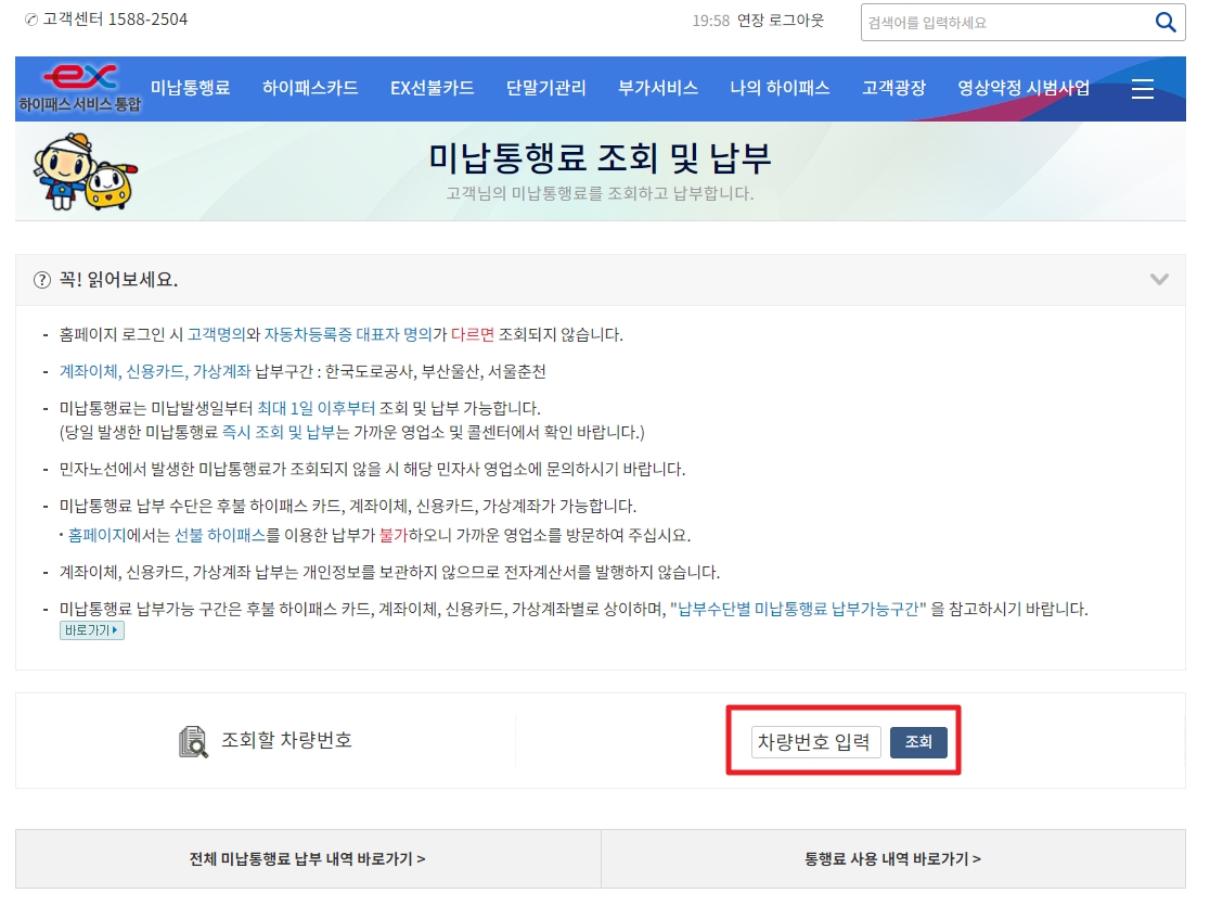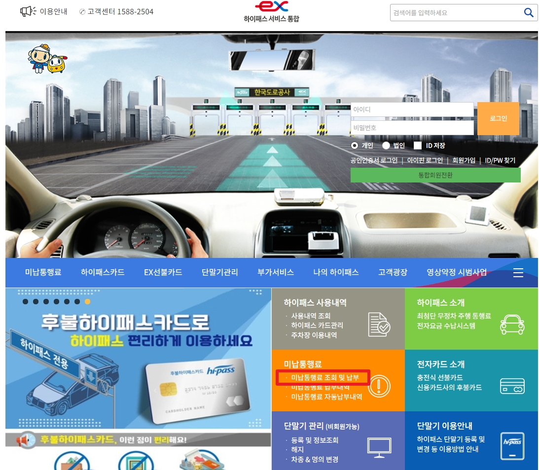 고속도로 통행료 미납 하이패스 미납요금 조회 납부방법