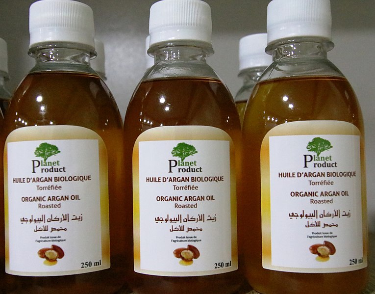 아르간 오일은, 모로코의 황금이라고 불리는 귀한 오일입니다. 아르가니아 나무의 열매 씨에서 추출한 오일입니다. 아르가니아 나무는 모로코 남서부 지역이 원산지로, 이곳에 위치한 아르가느레 생물권보전지역에서 자생합니다. 척박한 환경에서 잘 적응하는 품종이나 현재 단종 위험 수종으로 분류되어 있습니다. 1리터의 아르간 오일을 얻기 위해서는 16그루의 아르간 나무가 필요하며 약 10시간 정도의 노동이 투여되는데, 이렇게 만들어진 아르간 오일은 황금빛이 도는 갈색을 띠며 크림과 같이 부드러운 질감에 견과류와 같은 향미를 지니고 있습니다.