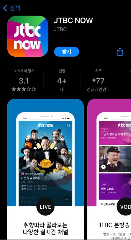 앱스토어나 플레이스토어에서 JTBC 를 검색하게 되면 JTBC NOW 어플이 나오는데요, JTBC NOW 어플을 설치해 줍니다.