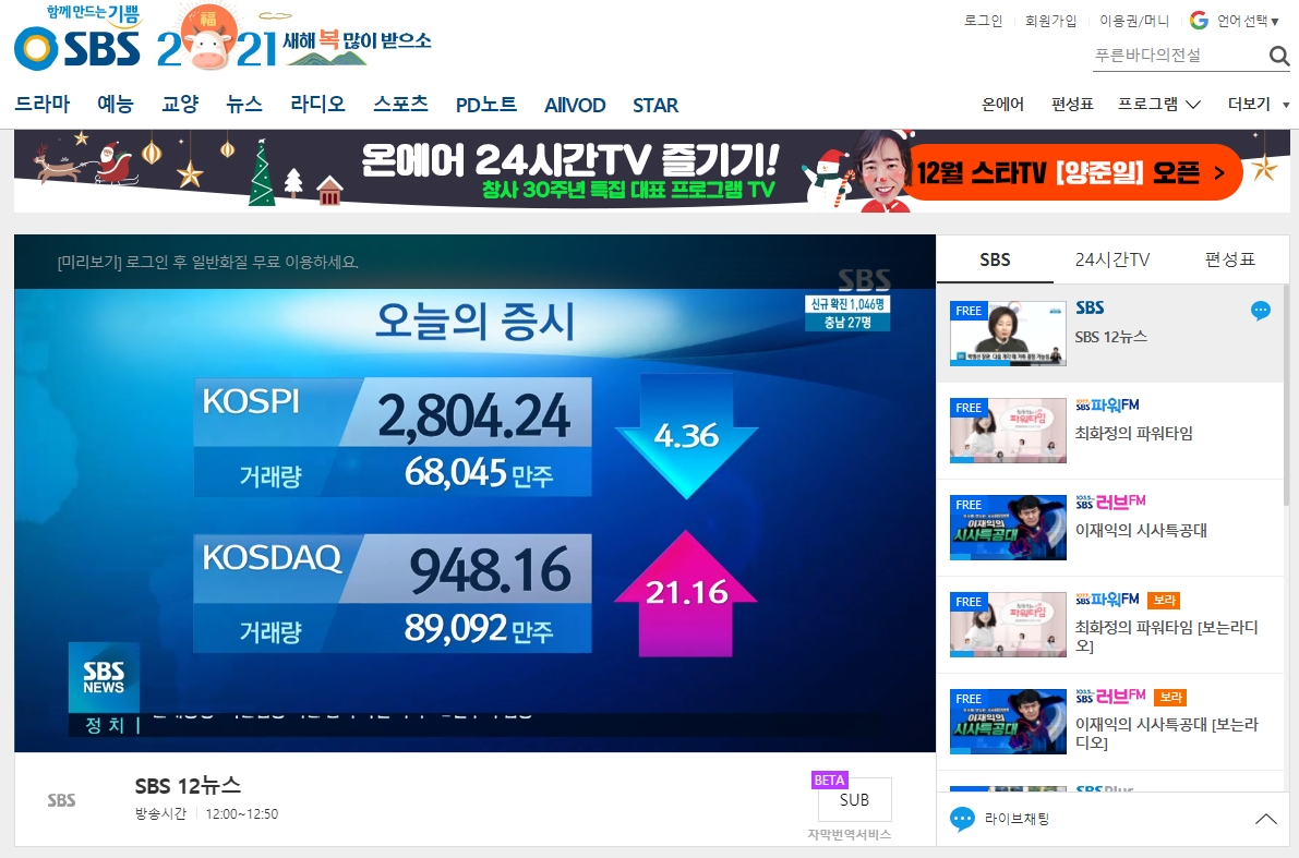 만약 아이들 키우느라 집에 TV가 없으시거나, 월요일 화요일 10시인데 밖에 대중교통으로 이동 중이신 분들도 펜트하우스 본방을 챙겨보실 수 있습니다. 바로 SBS 제공하는 온에어 서비스를 이용하시면 됩니다. SBS 온에어는 노트북, 컴퓨터, 스마트폰 으로도 SBS 채널을 시청할 수 있는데요.