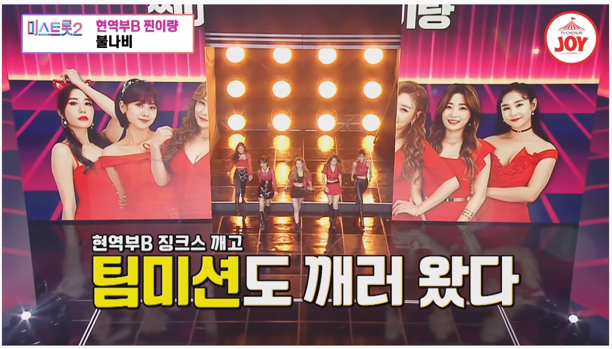미스트롯2 4회 방송에서는 장르별 팀 미션을 방영했습니다. 마스터 오디션에서 '진(眞)' 을 차지한 윤태화, 인기순위 3위 강혜연이 포함된 현역부 B조 '찐이량' 팀은 장윤정 님의 불나비를 선곡했습니다. 블랙과 레드의 강렬한 의상을 차려입고 멋진 퍼포먼스를 보여주면서 시선을 사로잡았습니다.