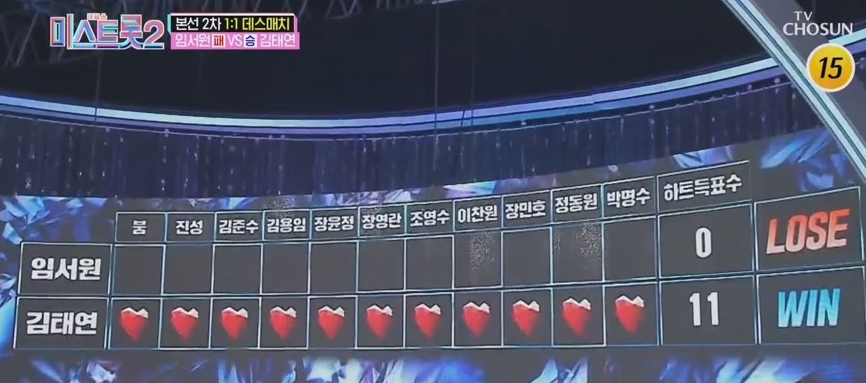 이어서 참가자 중의 막내인 김태연 은 '이태호 - 간대요 글쎄' 를 부르며 나이가 믿기지 않는 빈티지 감성과 농익은 가창력을 자아내 마스터들의 탄성이 터지게 만들었습니다. 결국 마스터들은 만장일치로 김태연에게 손을 들어주었습니다.