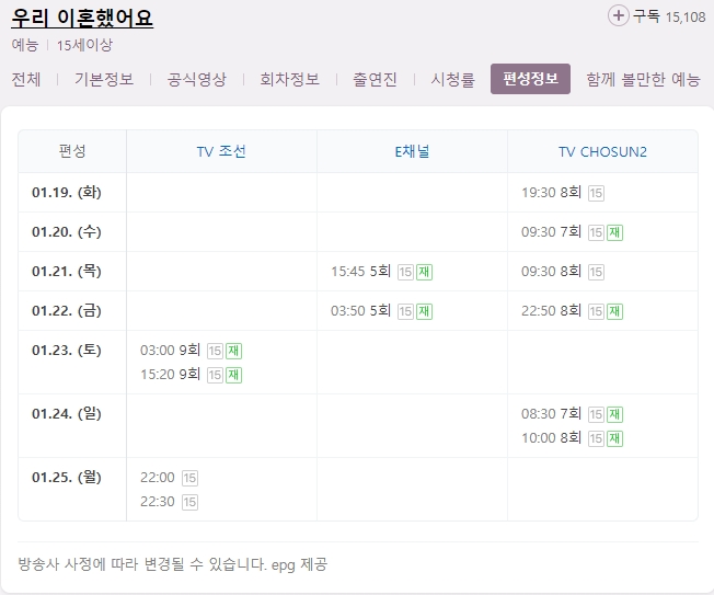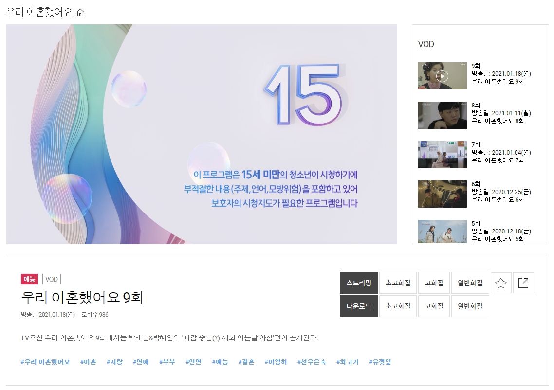 우리 이혼했어요 재방송 다시보기 TV조선 온에어