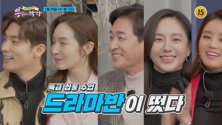 뽕숭아학당 35회 에서는 티브이조선 새 주말 미니시리즈 '결혼 작사 이혼 작곡'의 배우 성훈/박주미/이가령/이민영/전노민 이 출연하여 '드라마 반 합동 수업'을 받았습니다. 처음 이들은 어색함을 풀기 위해서 임영웅 등 트롯맨들이 김연자 - 10분 내로 를 열창해 화기애애한 분위기를 주도합니다.