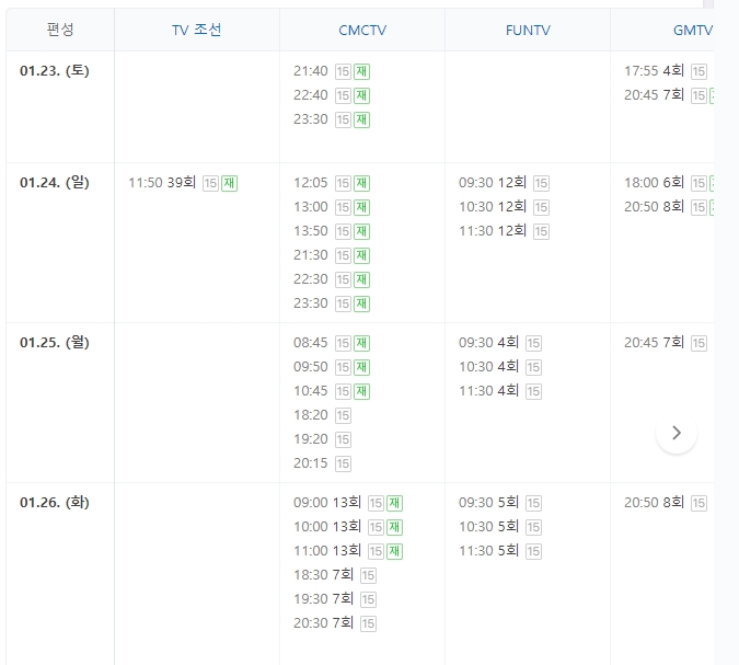 | 아내의맛 132회 재방송 다시보기 210119 (ft. TV조선 방송편성표) (0) | 2021.01.20 |