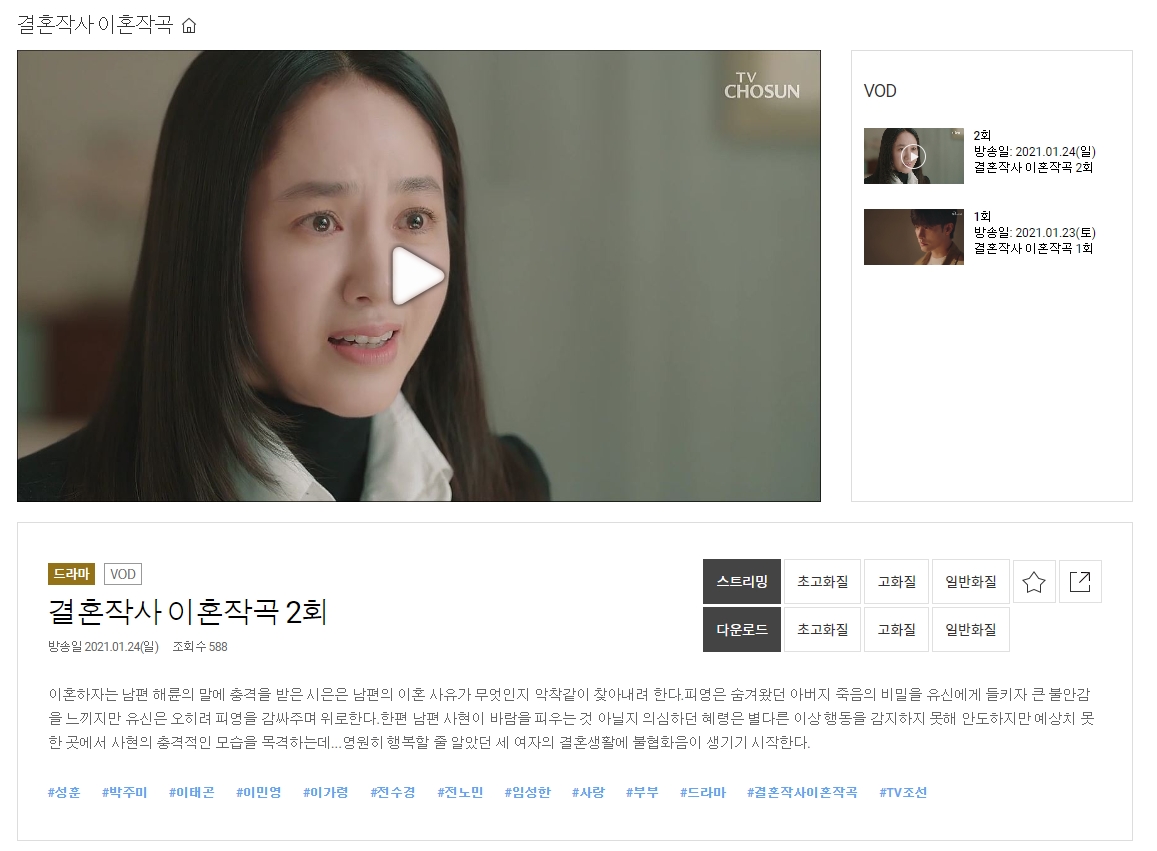 결혼작사 이혼작곡 2회 다시보기 바로가기(tvchosun.com)