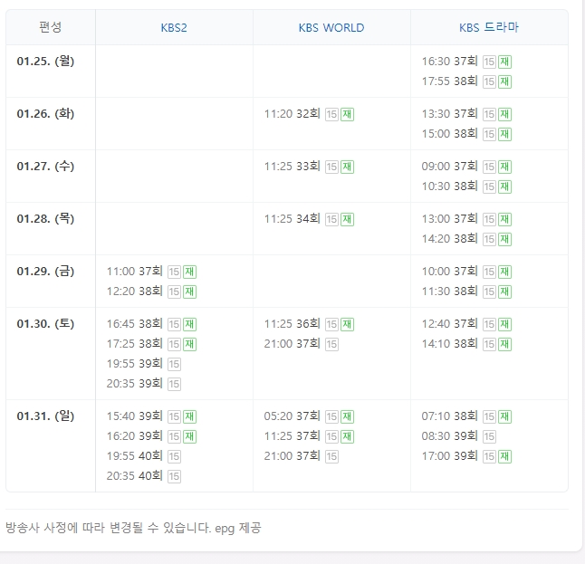KBS2 방송편성표 재방송시간 온에어 실시간 방송 보기