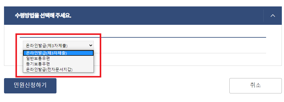 만약에 은행에 제출을 해야한다면 제 3자로 선택하거나, 우편으로도 가능합니다.