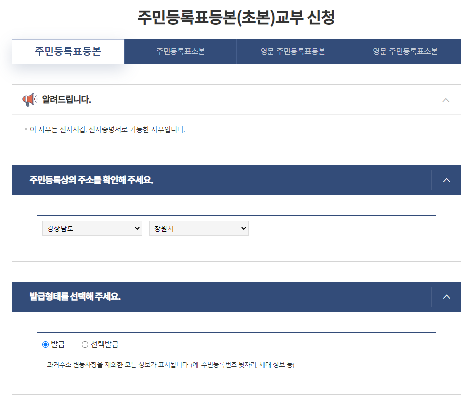 이렇게 입력하고 나면 주민등록표등본(초본)교부 신청화면으로 넘어가게 됩니다.