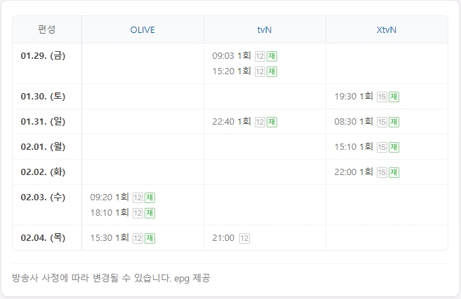 - TVN 방송편성표
