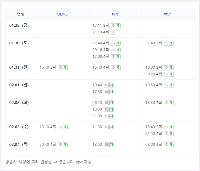 수요일 OLIVE 13:10 // XTVN 21:50