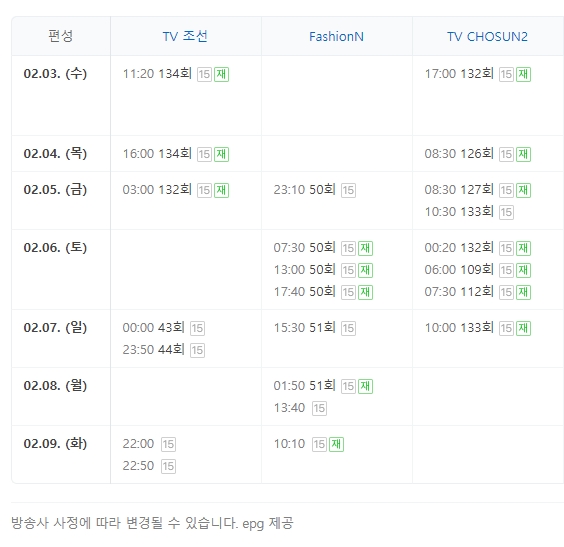 티브이조선 아내의 맛 134회 재방송 편성표