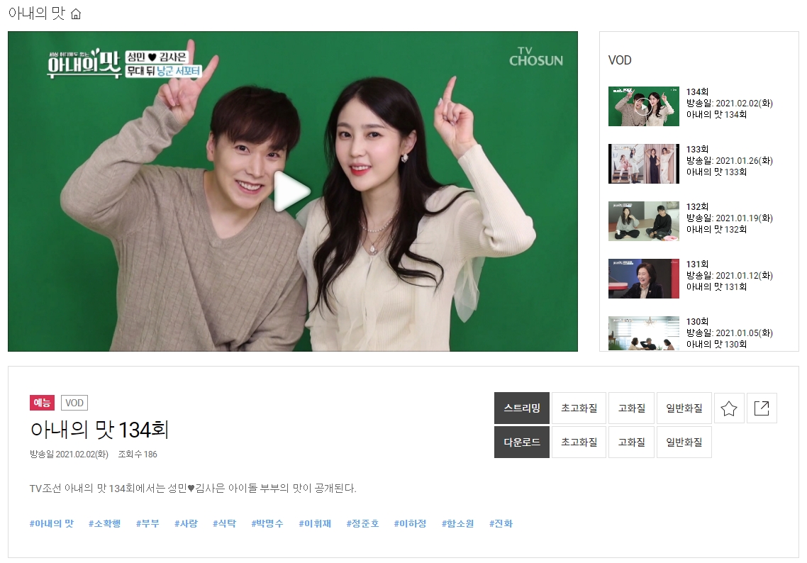 1) 티브이조선 홈페이지 아내의 맛 다시보기
