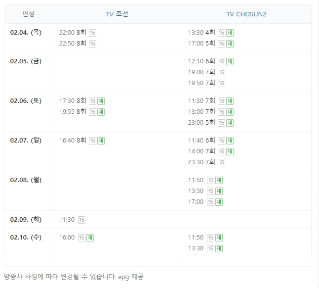 편성 : TV조선 2020년 12월 17일 ~ (목) 오후 10:00