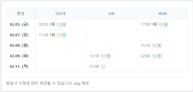 - TVN 방송편성표