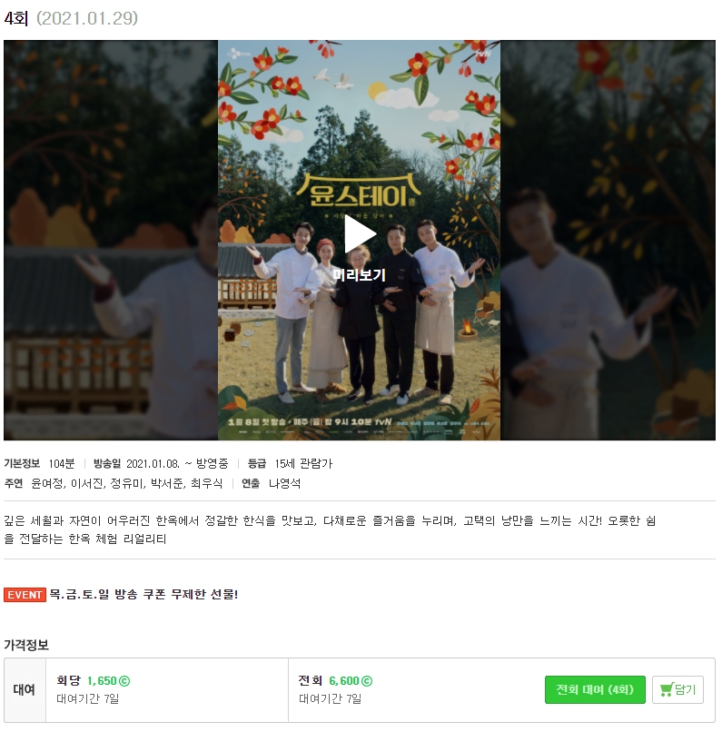 2) 네이버 시리즈온 윤스테이 재방송 다시보기