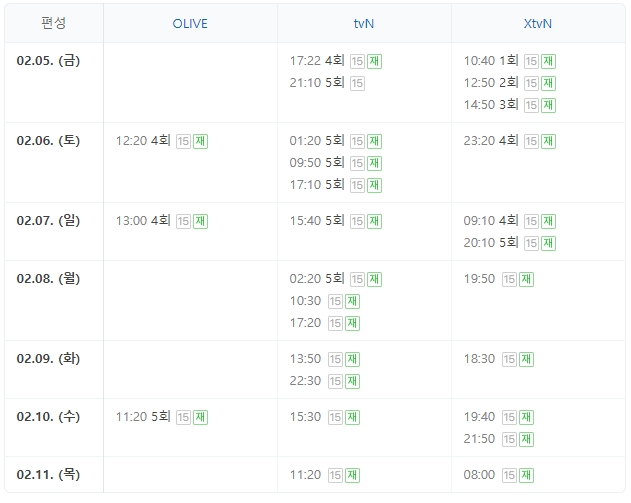 편성 : TVN 2021년 01월 08일 ~ (금) 오후 09:10