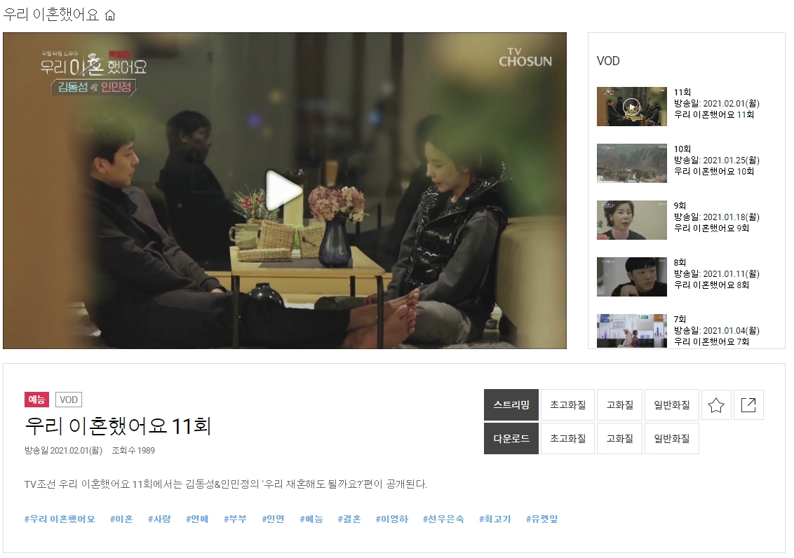 TV조선 홈페이지 - 우리 이혼했어요 다시보기