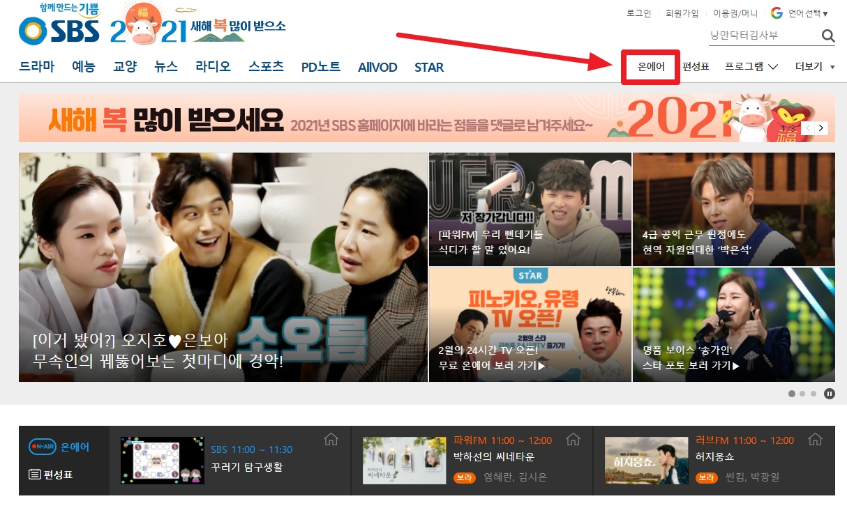 SBS 홈페이지 온에어 서비스 바로가기