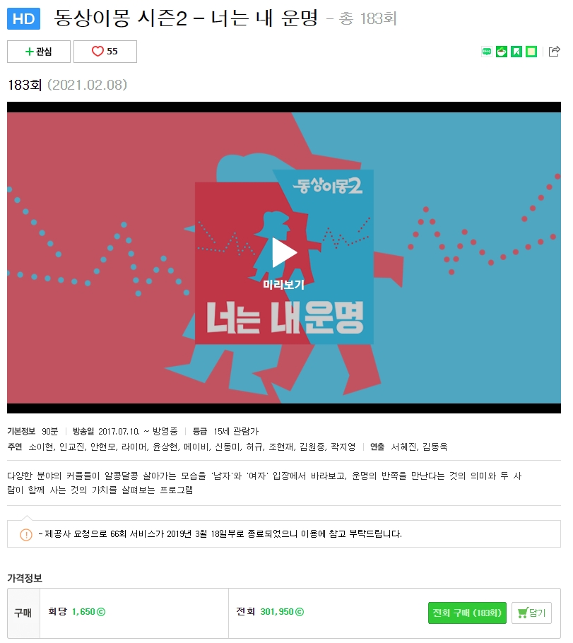 2) 네이버 시리즈온 동상이몽2 - 너는 내 운명 재방송 다시보기