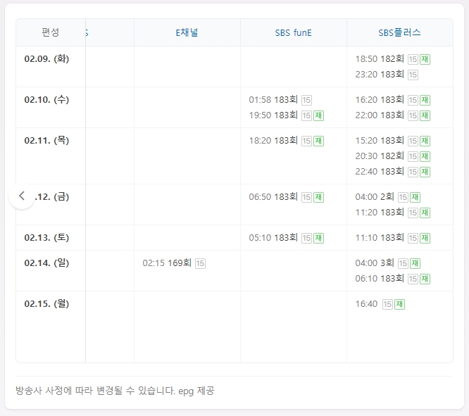 수요일 SBS funE 01:58, 19:50 // SBS플러스 16:20, 22:00