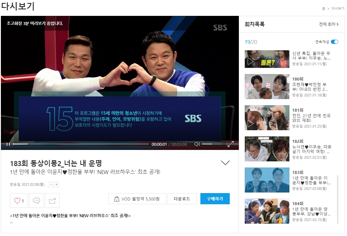 1) SBS 홈페이지 동상이몽2 - 너는 내 운명 재방송 다시보기