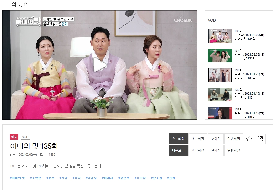 티비조선 홈페이지 아내의 맛 다시보기 (tvchosun.com)