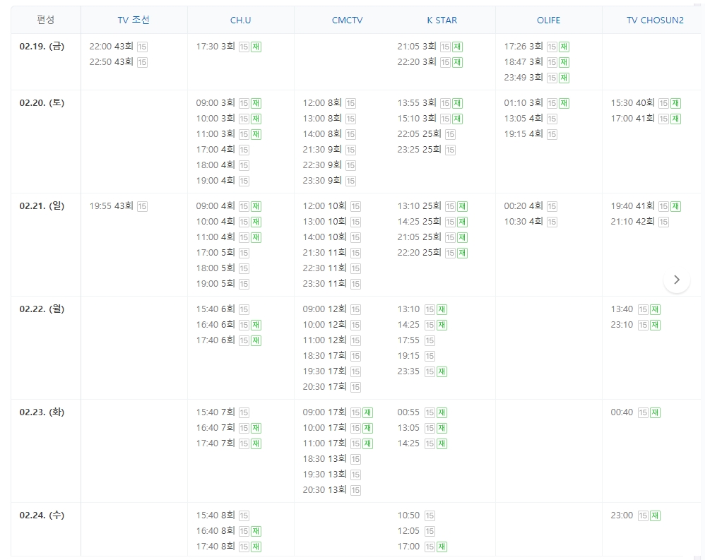 | 뽕숭아학당 39회 재방송 다시보기 (ft. TV조선 방송편성표) (0) | 2021.02.17 |