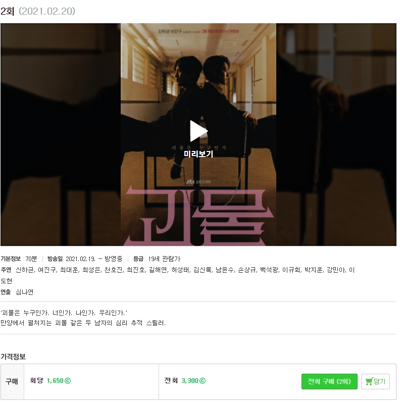 2) 네이버 시리즈온 괴물 재방송 다시보기