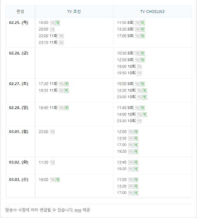 사랑의 콜센타 44회 재방송 다시보기 (ft. 티비조선 방송편성표) (0) | 2021.02.26 |