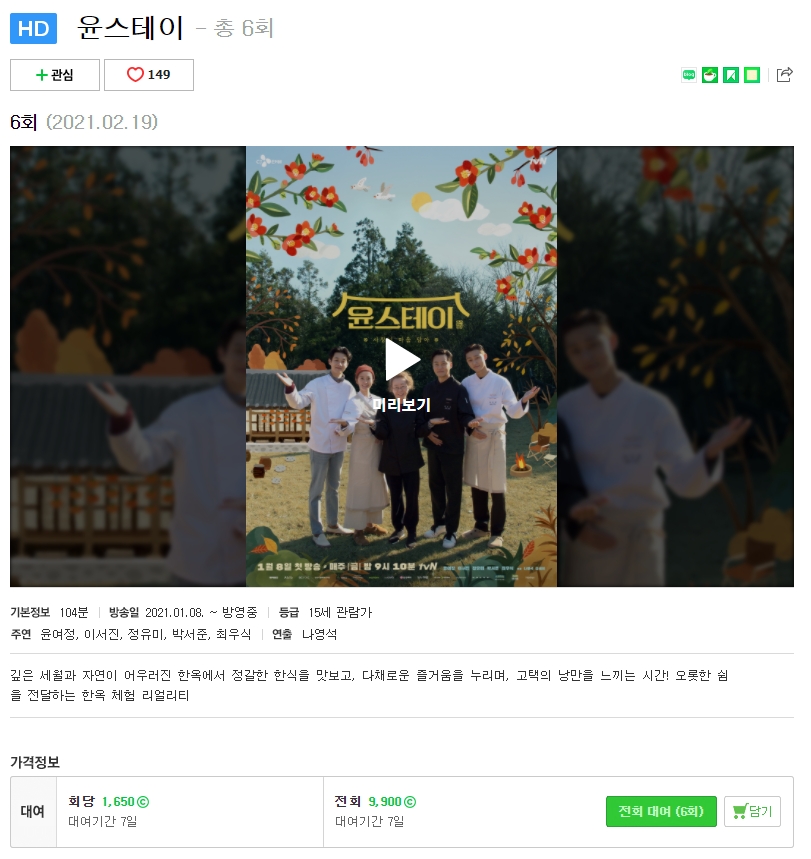 2) 네이버 시리즈온 윤스테이 재방송 다시보기