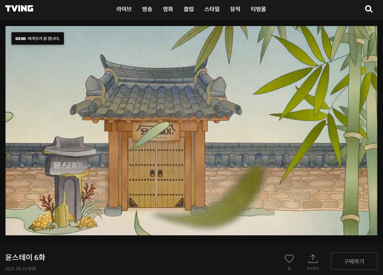1) TVING 홈페이지 윤스테이 재방송 다시보기