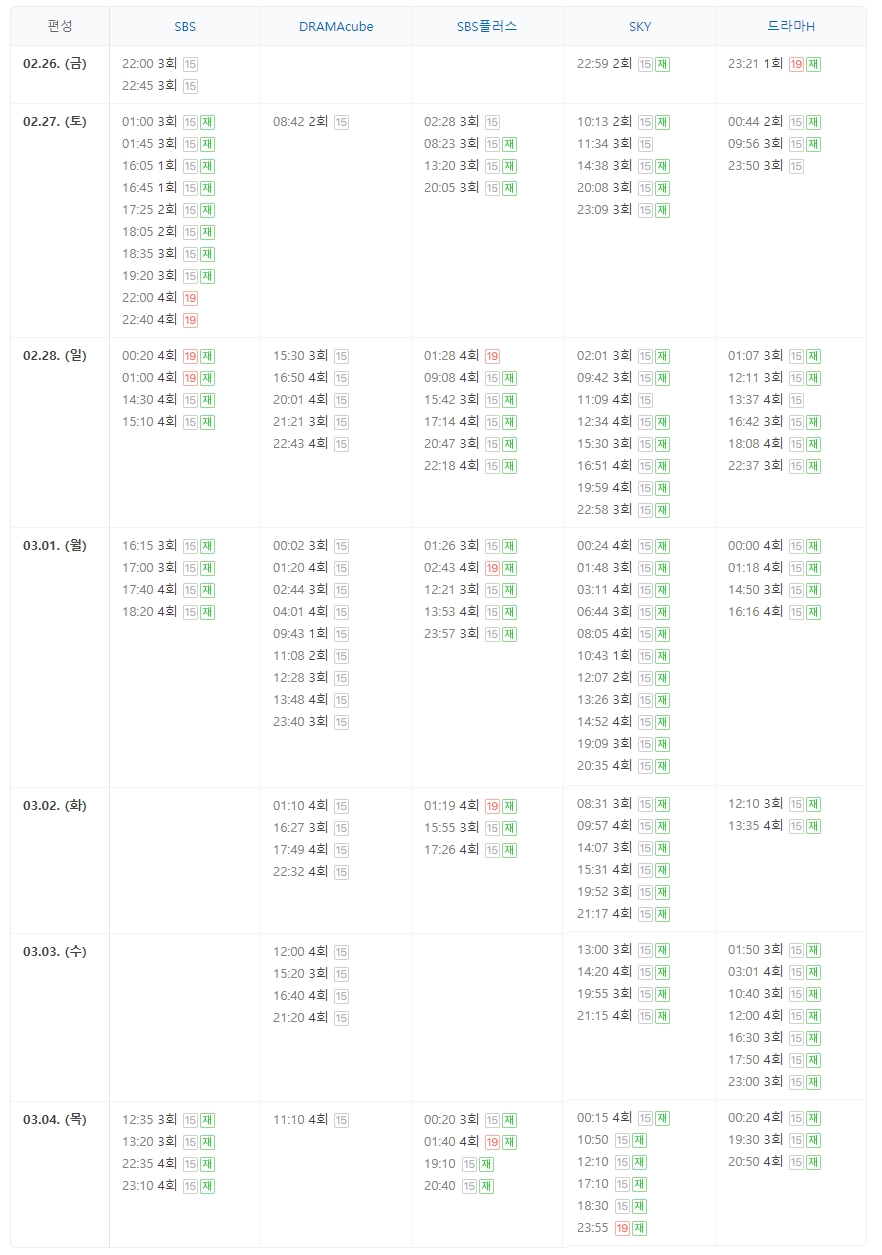 방송시간 : SBS 2021년 02월 19일 ~ (금, 토) 오후 10:00