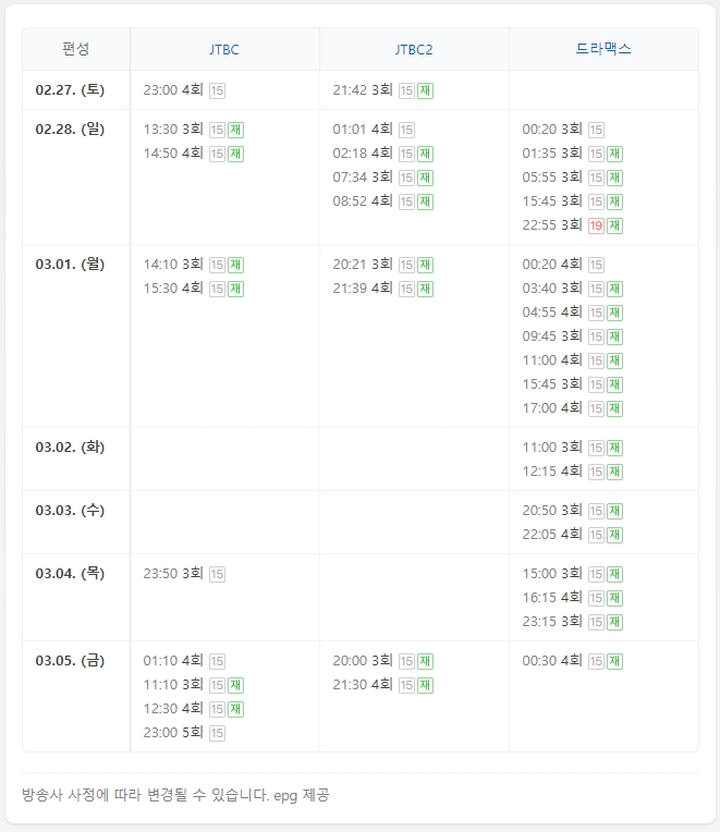 방송시간 : JTBC 2021년 02우러 19일 ~ (금, 토) 오후 11:00