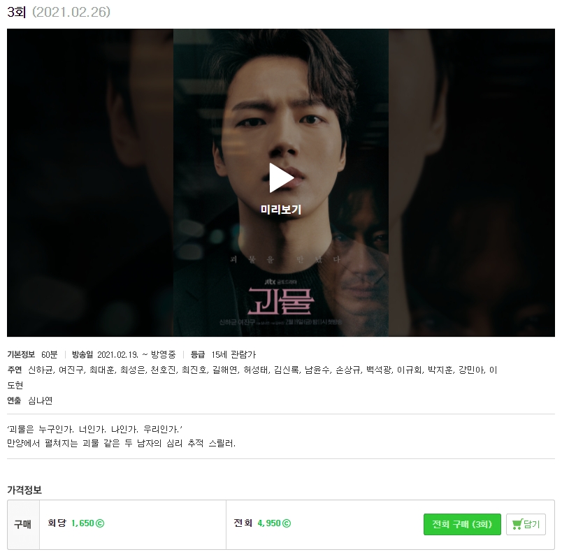 2) 네이버 시리즈온 괴물 재방송 다시보기