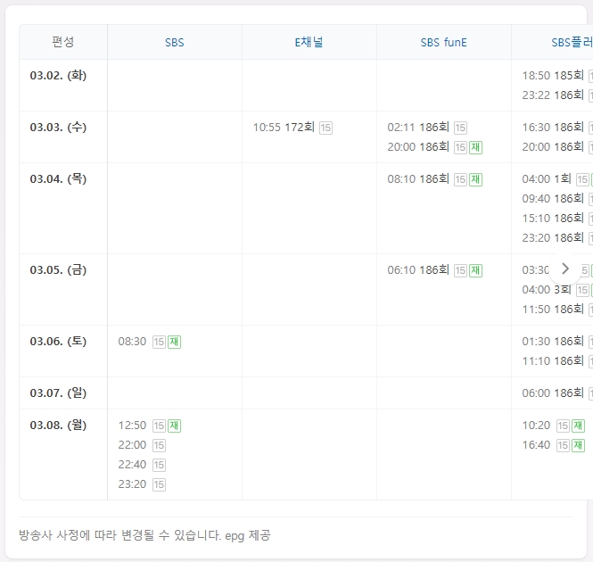 수요일 SBS funE 02:11, 20:00 // SBS플러스 16:30, 20:00